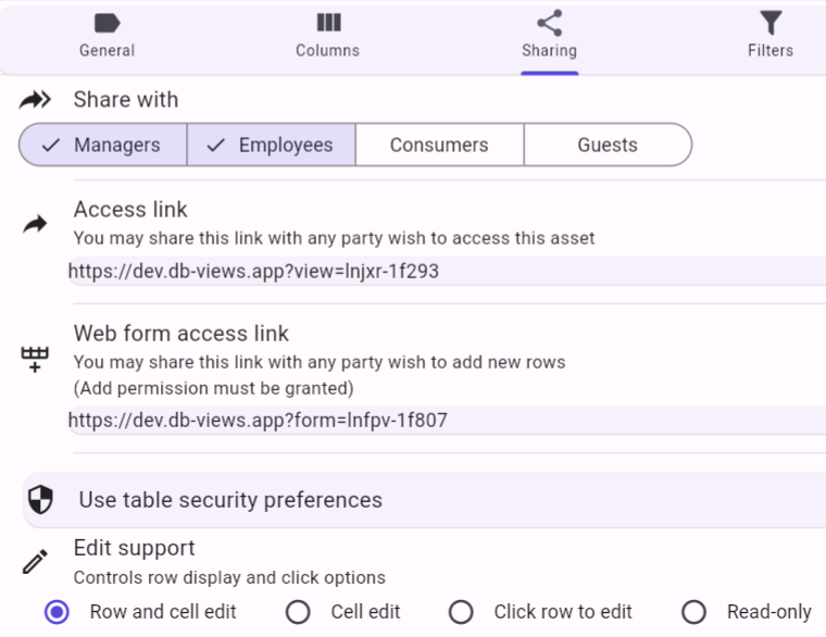 Control who sees the data and set other permissions as needed.