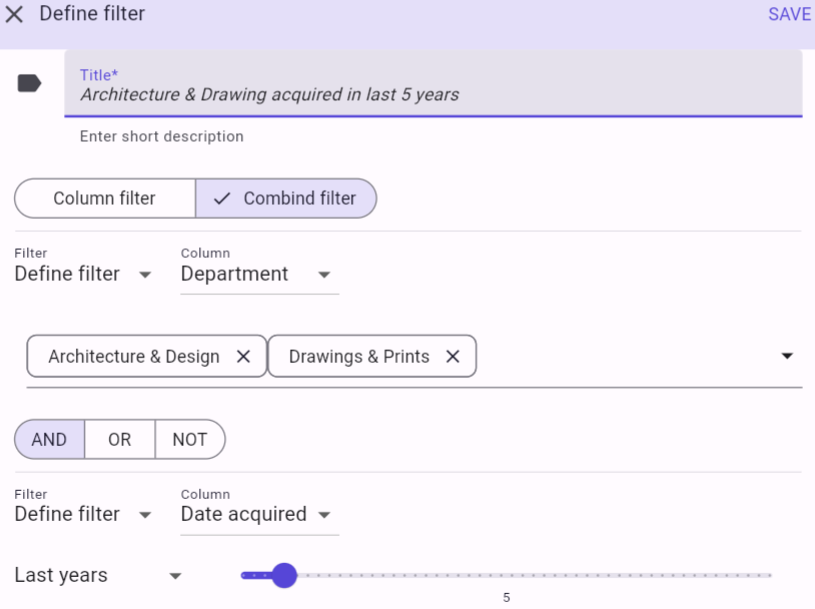 Filters can be combined by using the AND, OR, and NOT operators. This can be done repeatedly for as many levels as you wish.